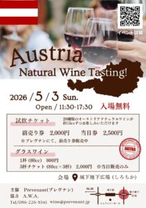 「オーストリアのナチュラルワインを楽しむ会」新着!!